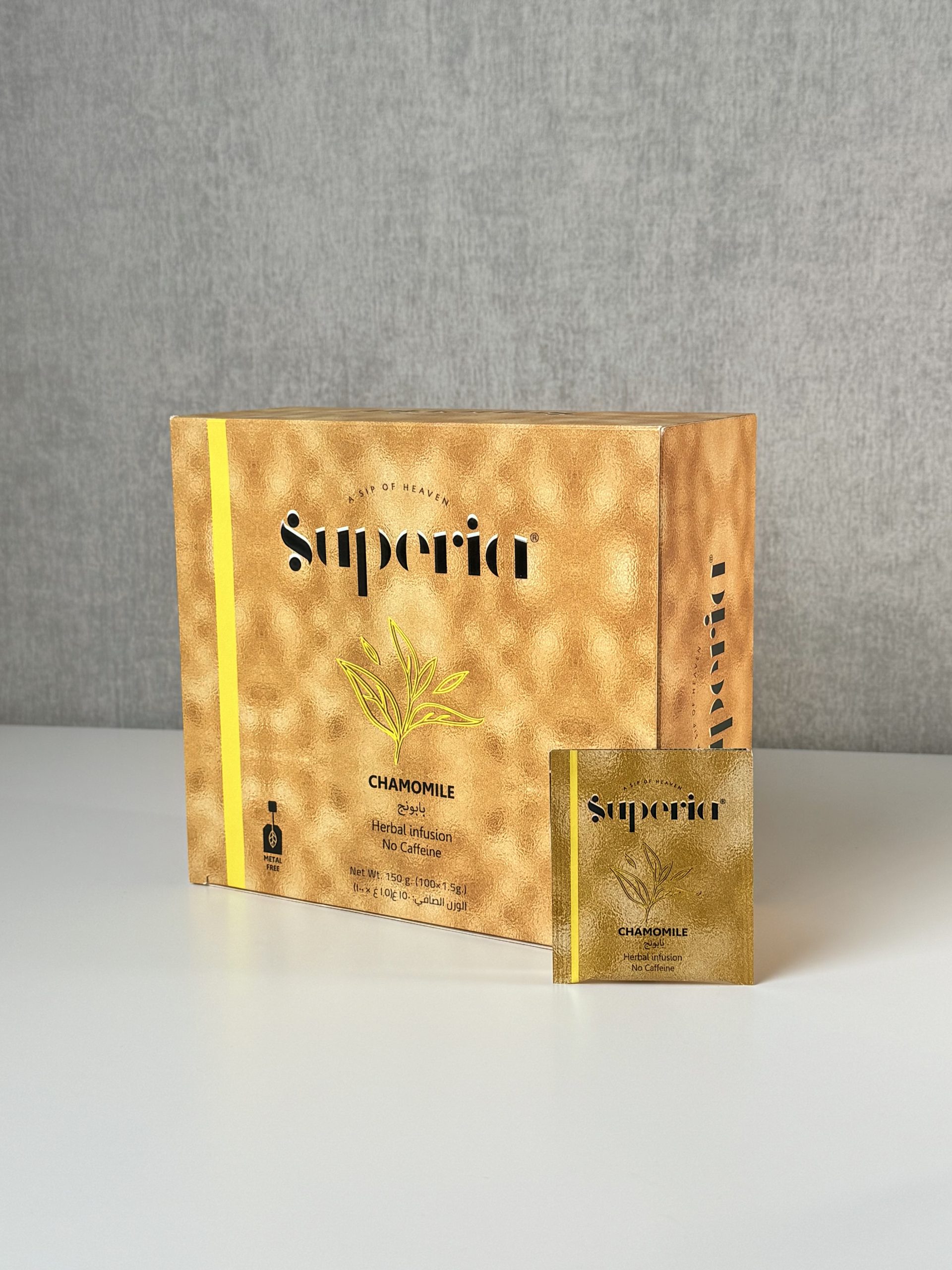 يأتي في صندوق يحتوي على 100 ظرف بابونج، ليكون مناسبًا للاستخدام اليومي أو لتقديمه في بيئات الضيافة الراقية.