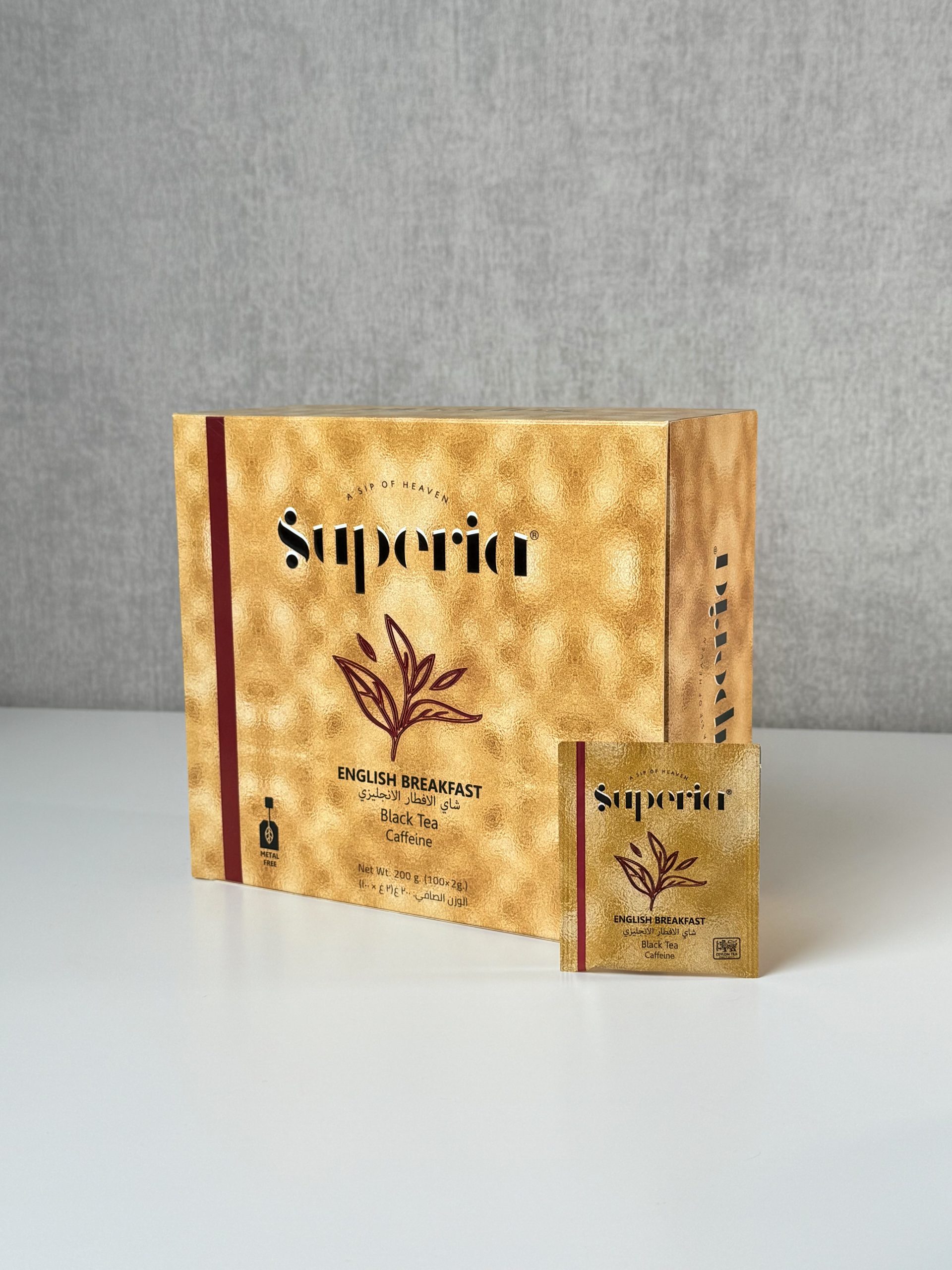 يأتيك في صندوق يحتوي على 100 ظرف شاي، ليكون خيارًا مثاليًا للاستخدام اليومي في المنزل أو في المقاهي والفنادق.